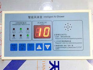 系統(tǒng)采用PLC自動(dòng)化的控制手段,控制面板上LED顯示屏可正確顯示風(fēng)淋的運(yùn)行狀態(tài)、雙門(mén)的互鎖狀態(tài)、風(fēng)淋周期進(jìn)度和延時(shí)開(kāi)門(mén)狀態(tài),并設(shè)有光電感應(yīng)器,單向通道風(fēng)淋室,從非潔凈區(qū)進(jìn)入,關(guān)門(mén)后紅外線感應(yīng)有人就吹淋,吹淋后入門(mén)鎖閉,只能從出門(mén)走出風(fēng)淋室。